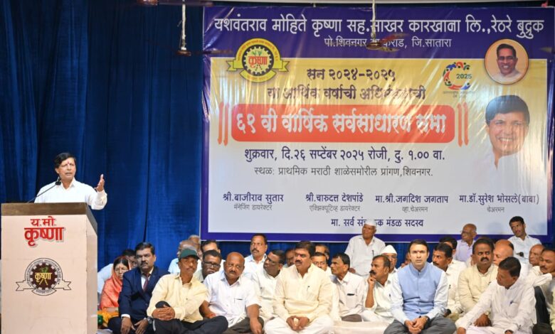 रेठरे बुद्रुक (ता. कराड) येथील यशवंतराव मोहिते कृष्णा सहकारी साखर कारखान्याच्या ६९ व्या सर्वसाधारण सभेत कारखान्याच्या माजी संचालक मंडळाच्या कारभारावर अप्रत्यक्ष निशाणा साधताना ते बोलत होते. यावेळी आमदार डॉ. अतुल भोसले, व्हा. चेअरमन जगदिश जगताप, माजी आमदार भगवान साळुंखे, संचालक वसंतराव शिंदे, धोंडीराम जाधव, बाजीराव निकम, कार्यकारी संचालक बाजीराव सुतार, एक्झिक्युटिव्ह डायरेक्टर चारूदत्त देशपांडे प्रमुख उपस्थित होते.