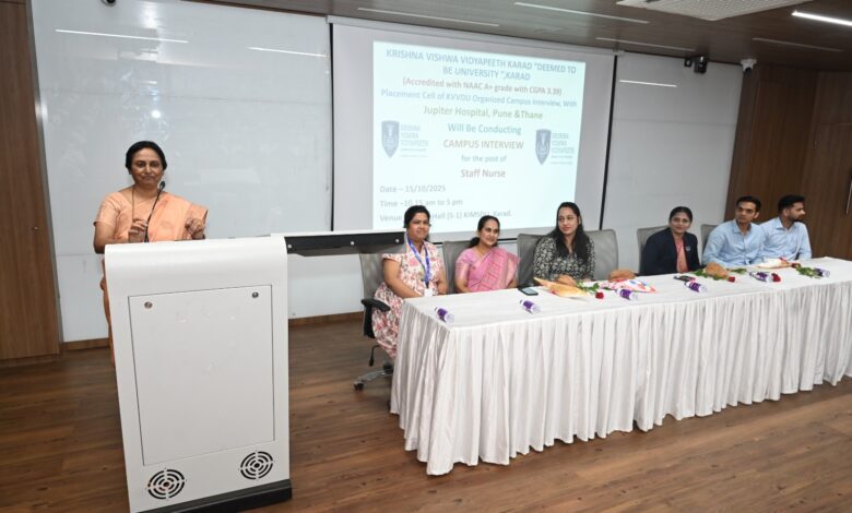 प्रारंभी कृष्णा विश्व विद्यापीठाच्या प्लेसमेंट सेलच्या प्रमुख डॉ. युगांतरा कदम व कृष्णा नर्सिंग इन्स्टिट्यूटच्या अधिष्ठाता डॉ. वैशाली मोहिते यांनी उपस्थितांचे स्वागत केले. यावेळी नर्सिंग पदवी, पदव्युत्तर, पदविका व जी.एन.एम. अभ्यासक्रमाचे शिक्षण घेणाऱ्या ६४ विद्यार्थी-विद्यार्थीनींची मुलाखतीद्वारे स्टाफ नर्स पदासाठी निवड करुन, त्यांना तत्काळ ऑफर लेटर प्रदान करण्यात आले.