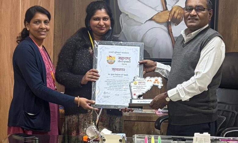 स.गा.म. महाविद्यालयातील सौ. पूनम होनकळसे यांना महाराष्ट्र गौरव पुरस्कार